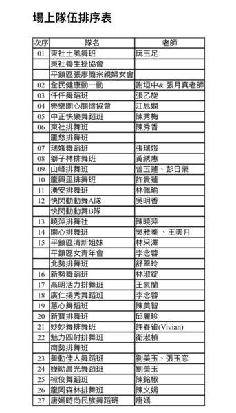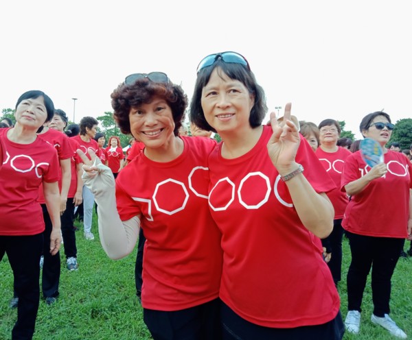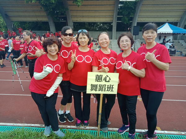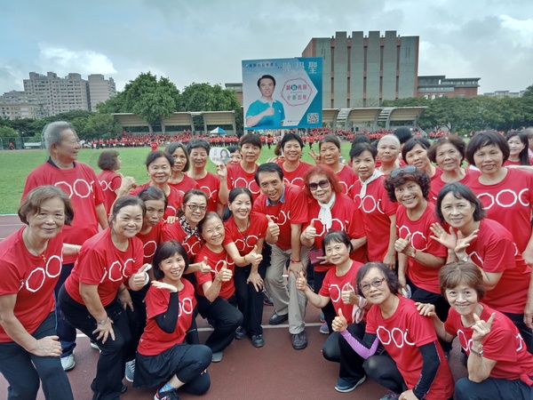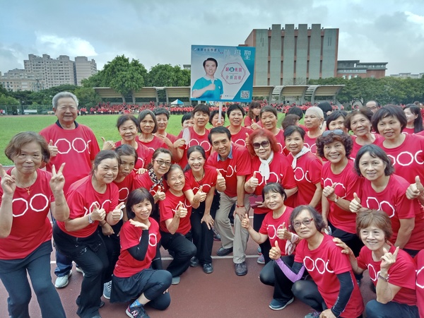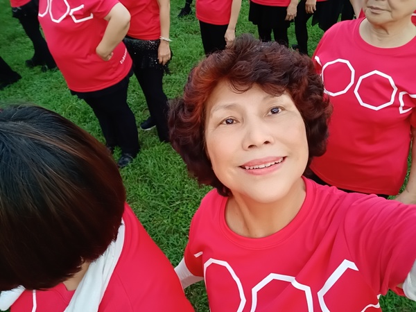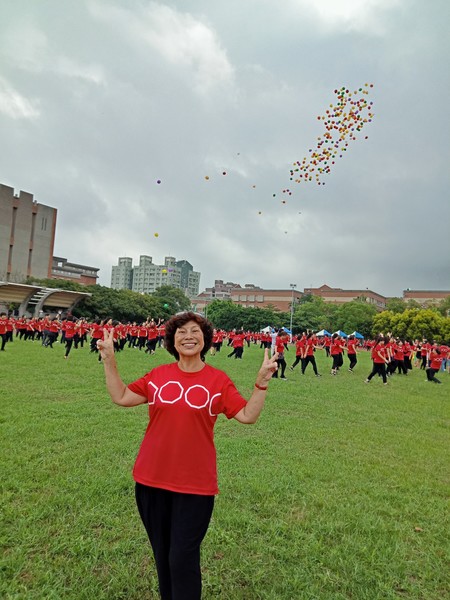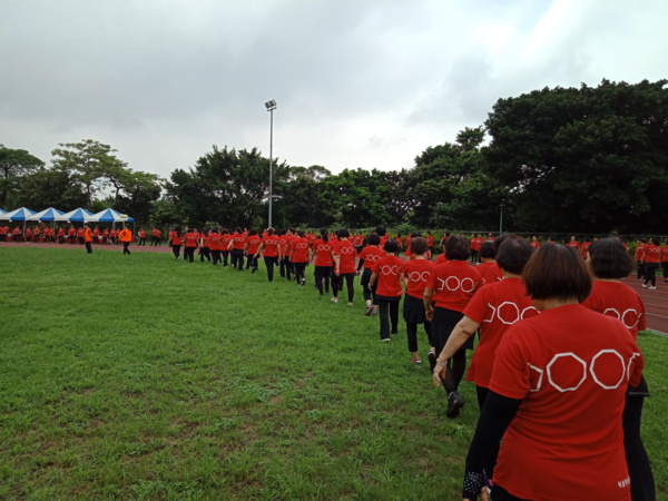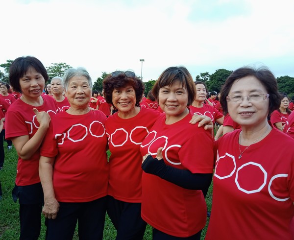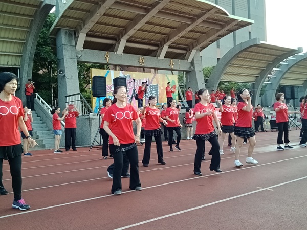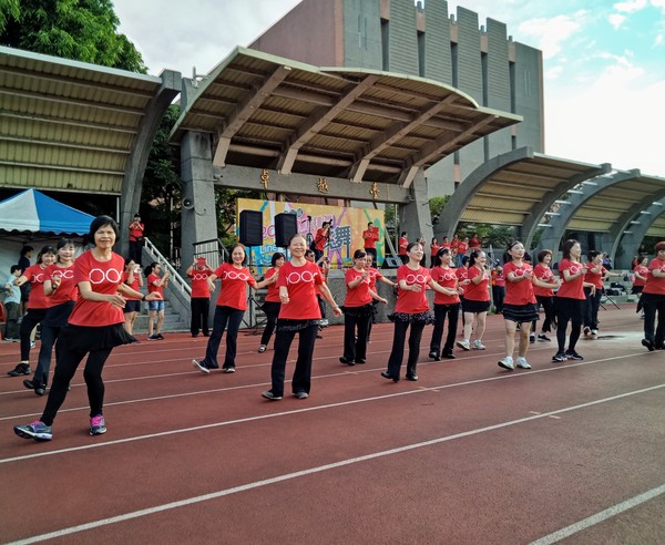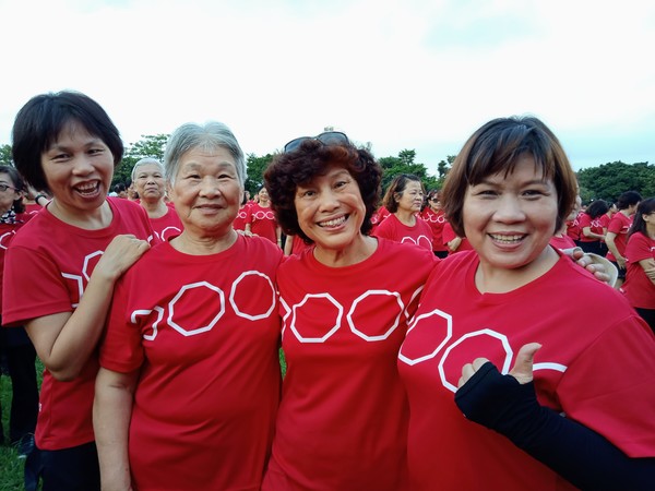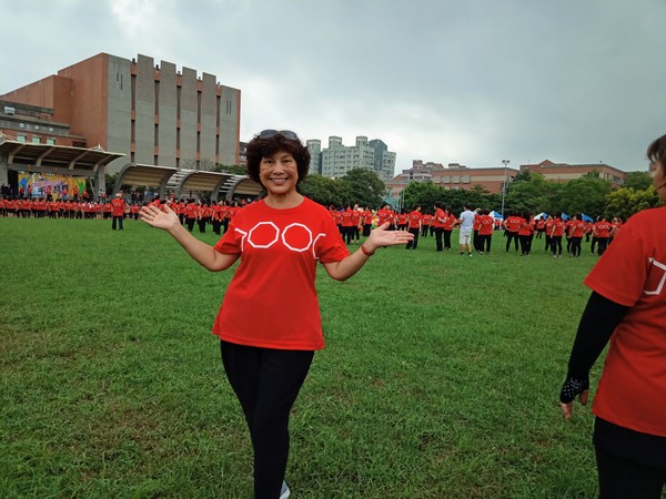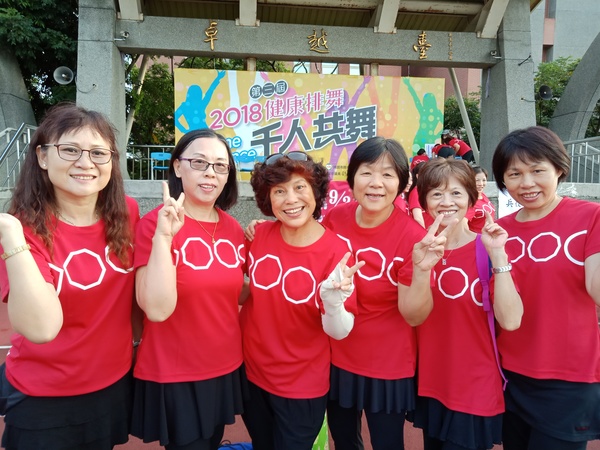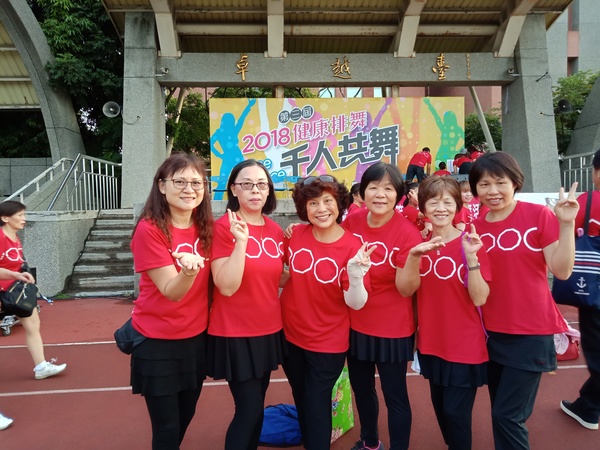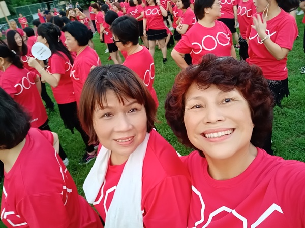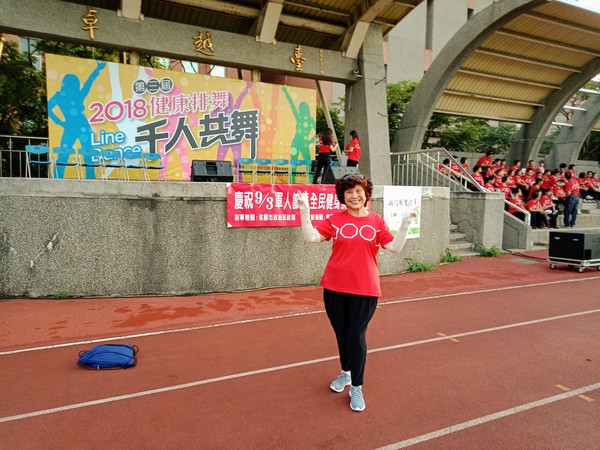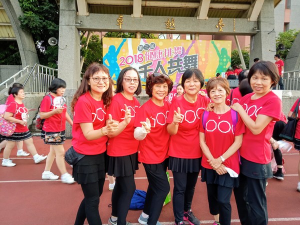 清晨五點四十分,我漱洗完畢,穿上黑長褲、大會發的紅上衣和新球鞋,褲口袋裡裝著Oppo手機和一條手帕,素顏騎上機車,前往平鎮高中運動場。到了目的地,看到好多老中青紅衫娘子軍,嘰嘰喳喳興奮得不得了!我們排舞班的好姊妹們在23號帳棚裡裡外外,也三五成群,開心地聊天或拍照。六點半時,美麗活潑的舒翠玲議員和聲音清脆的司儀宣布活動開始。幾位來賓簡短致詞後,隨著音樂響起,一千八百位舞者展開表演。舞姿曼妙的老師們在舞台上帶動,我們在台下輕鬆模仿跟著跳。這場充滿活力的排舞盛會自始至終毫無冷場,真的是天時、地利、人和,太圓滿了!謹此謝謝我平興快樂排舞班的美智老師、阿里班長及其他毅力驚人的眾姊妹們!