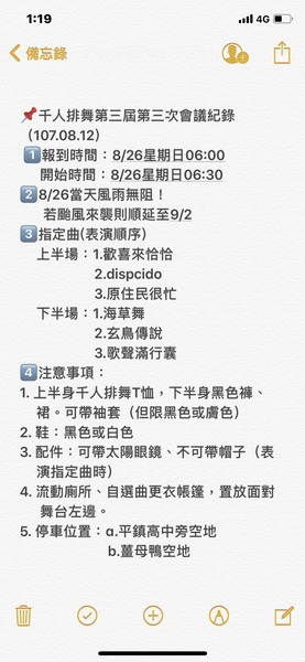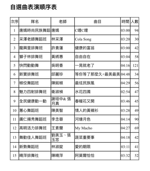 一轉眼,兩個月的歡樂暑假即將結束,育達和淡江九月初都要開學了。我每天早上六點至六點半,在平興國中籃球場跟著快樂排舞班姊妹們勤練的七支排舞,今天早上六點半至十點在平鎮高中大操場的千人共舞中終於隆重登場了。六首指定曲是1.歡喜來恰恰 2.拉丁神曲Despacito 3.原住民很忙 4.海草舞 5.玄鳥傳說 6.歌聲滿行囊,另外還有一首各班自選曲,我們蕙心舞蹈班的自選舞曲是美智老師編排的「情人的黃襯衫」。